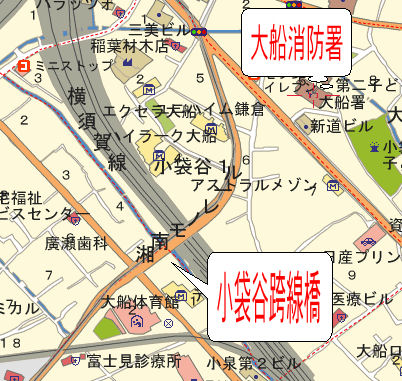 大船側から富士見町方面へ番号振って調査結果を示しています。